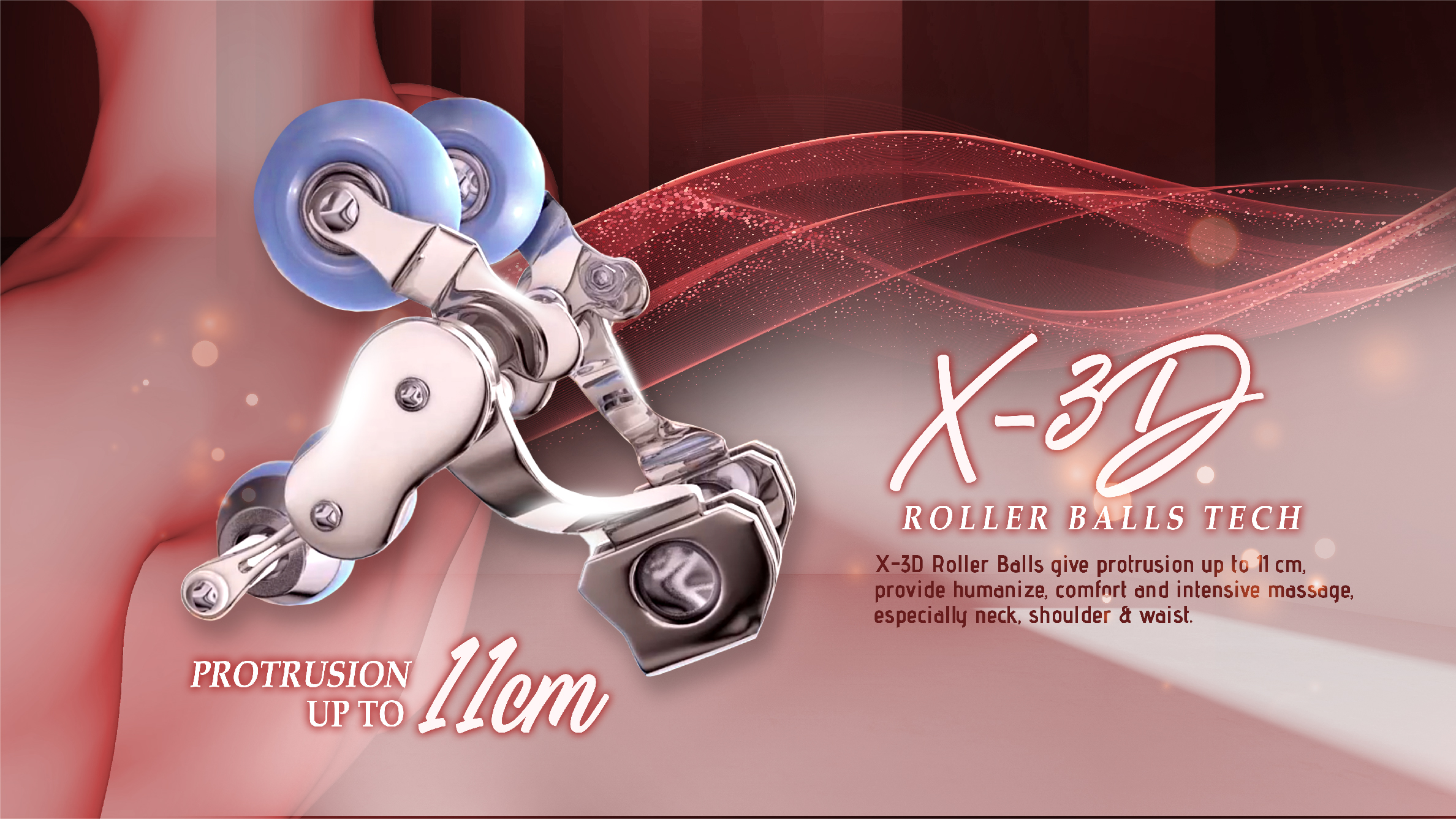 2 rollers of 11cm protrusion for a deeper massage that focuses on neck, shoulder & waist which provides a humanized massage.