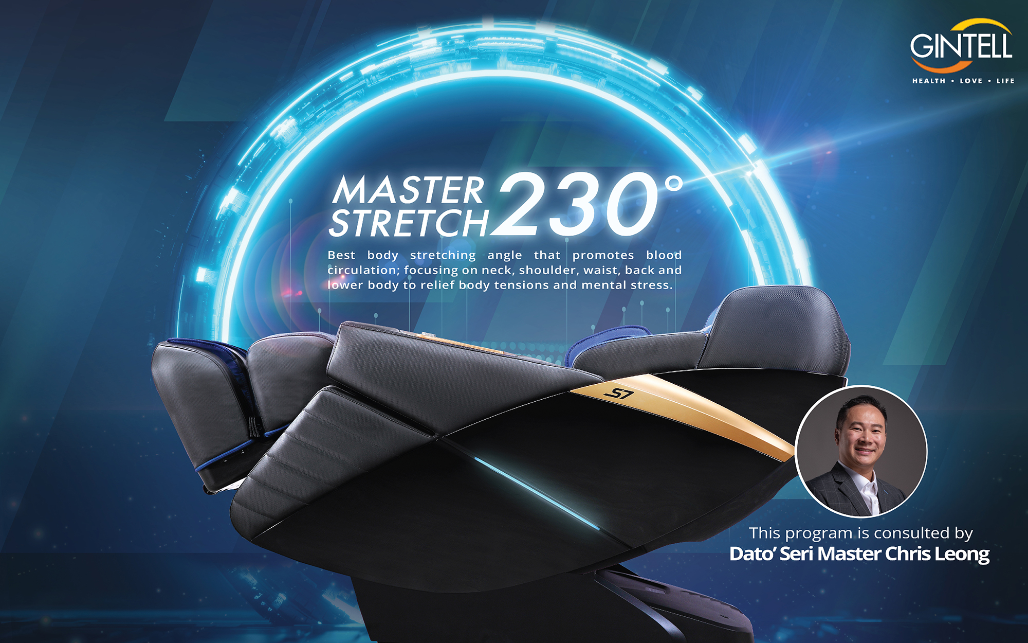 GINTELL S7 SuperChAiR can be placed in any area at home from your living room to your bedroom, making a presence of premium, comfort yet prestige to the eyes. GINTELL is aspire to convey the Brilliance of Wellness with the emphasis on innovation & extraordinary AI Technology for both comfort and experience.