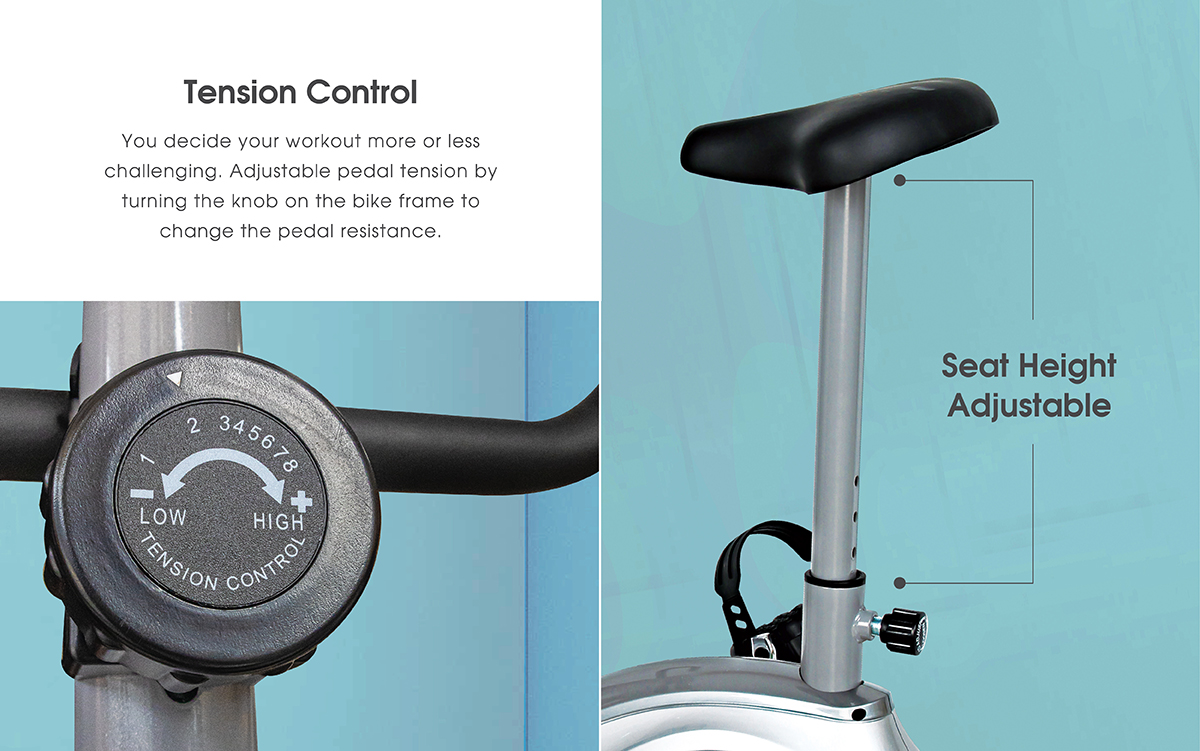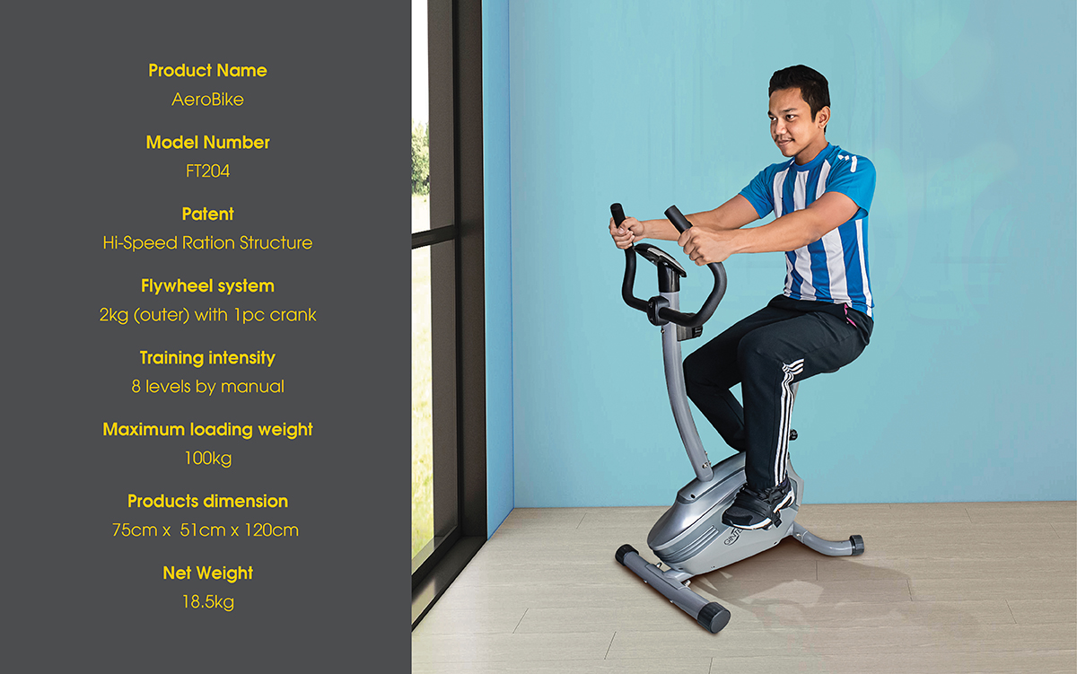 GINTELL AeroBike FT204 challenging home workouts for beginner to intermediate riders. Functioning from a 2 kg flywheel and the bike offers 8 resistance levels; pushing each workout to ramp up your fitness.