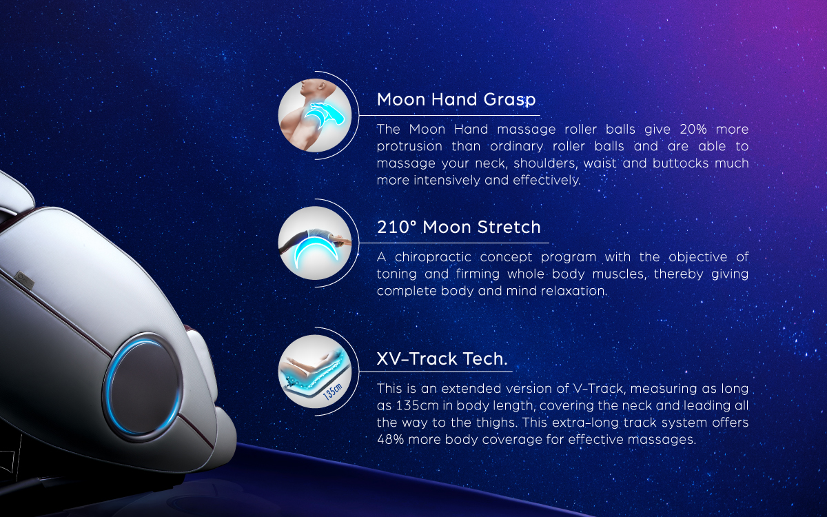 It brings us great pleasure to present GINTELL DéSpace Moon, or the Moon-hand Massage Chair, the trendiest addition to the GINTELL U.F.O massage chair series. A compressed version of DéSpace U.F.O, DéSpace Moon offers an array of irresistible advantages for healthcare seekers and sports enthusiasts alike. Equipped with a complete array of massage functions, the platinum purple GINTELL DéSpace Moon represents one of the best choices for the entire family!