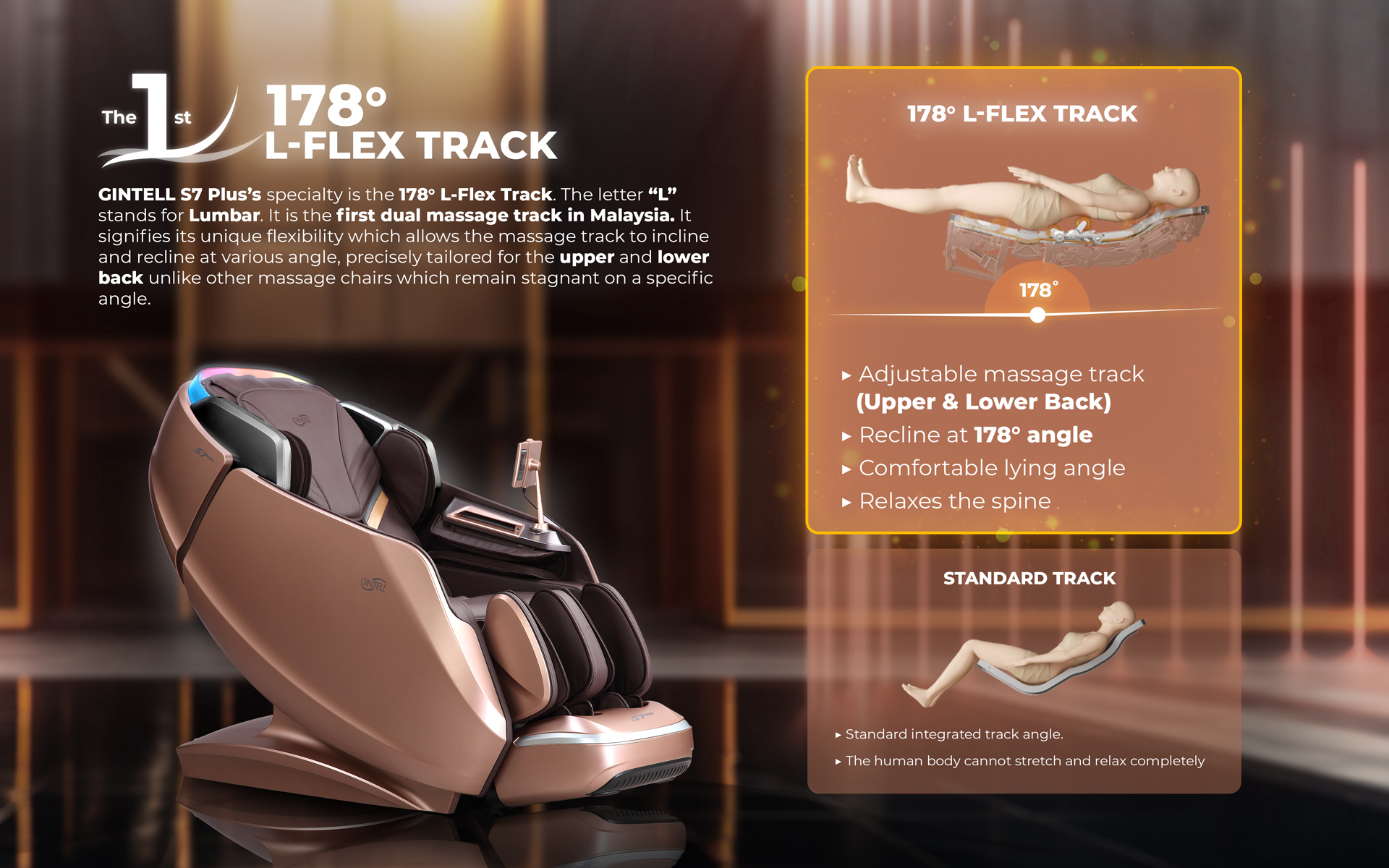 1st massage chair with flexible massage track that massages the upper and lower back, hips & waist simultaneously.
